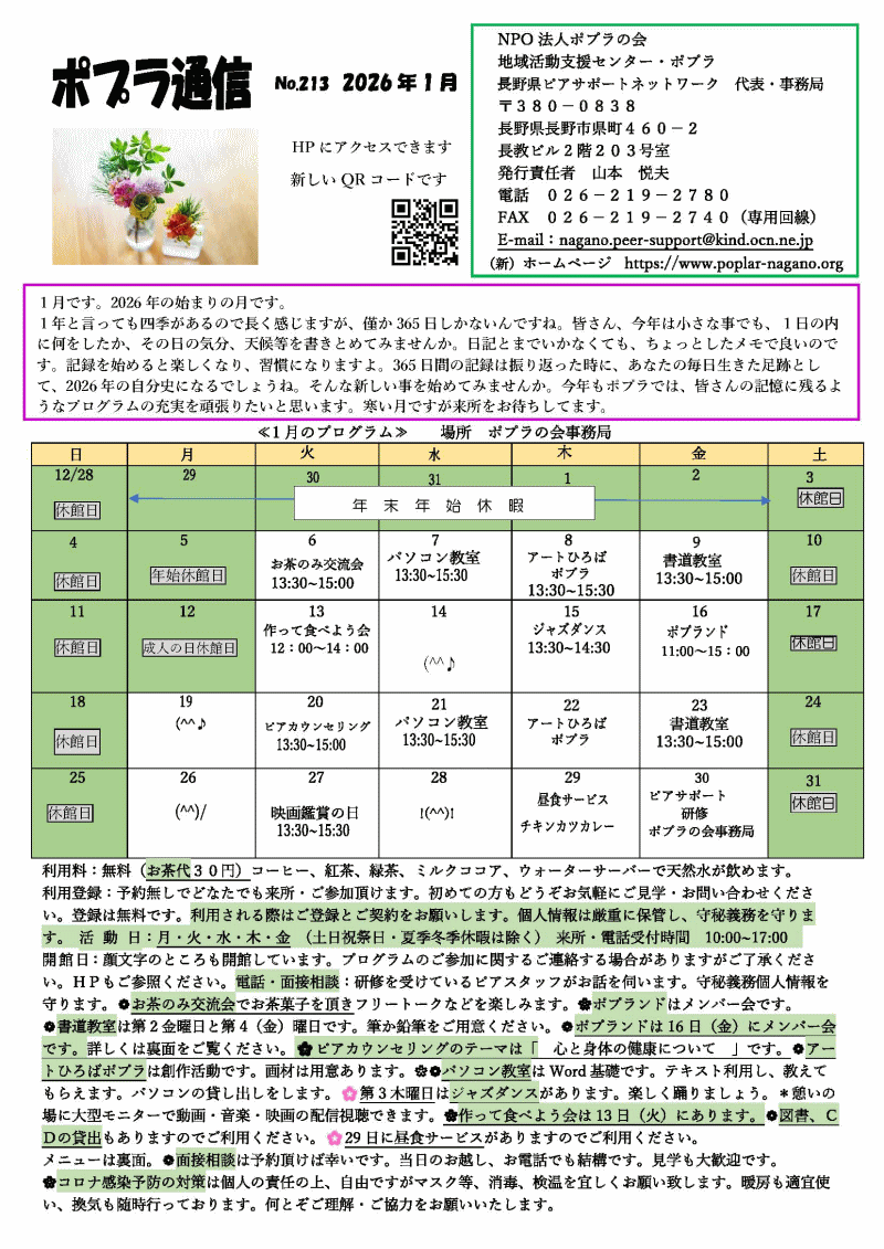 | 【 長野県ピアサポートネットワーク事務局 】 | |||