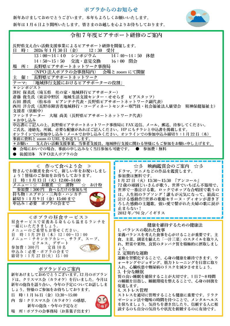 | 私たちは長野に拠点を置く、精神障がい者の当事者会です | |||