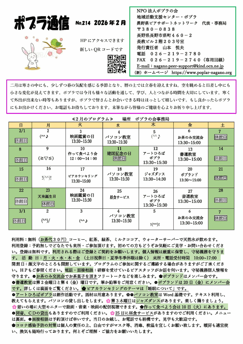 | ポプラ通信 2月号の表面と裏面PDFファイルでご覧になれます こちら⇒(PDFファイル) | |||